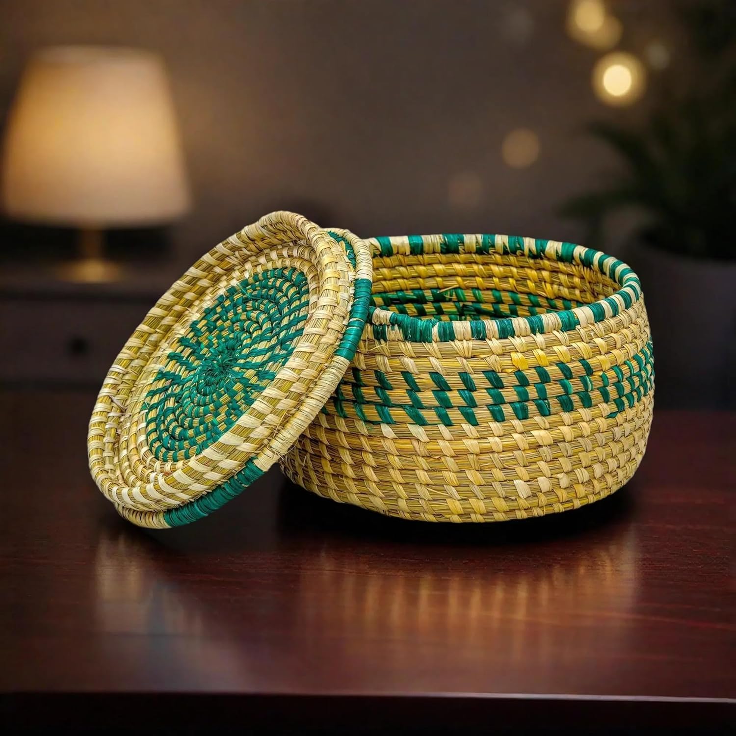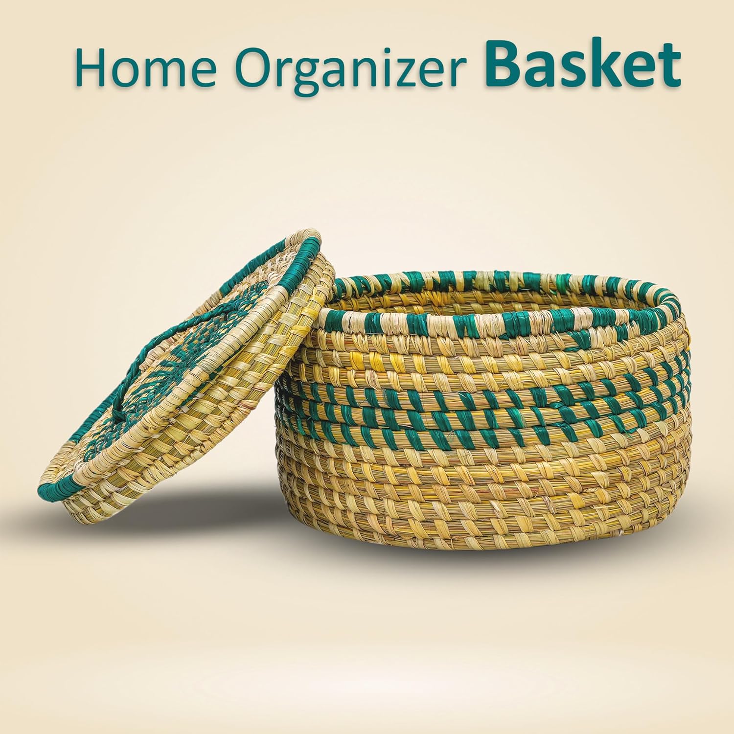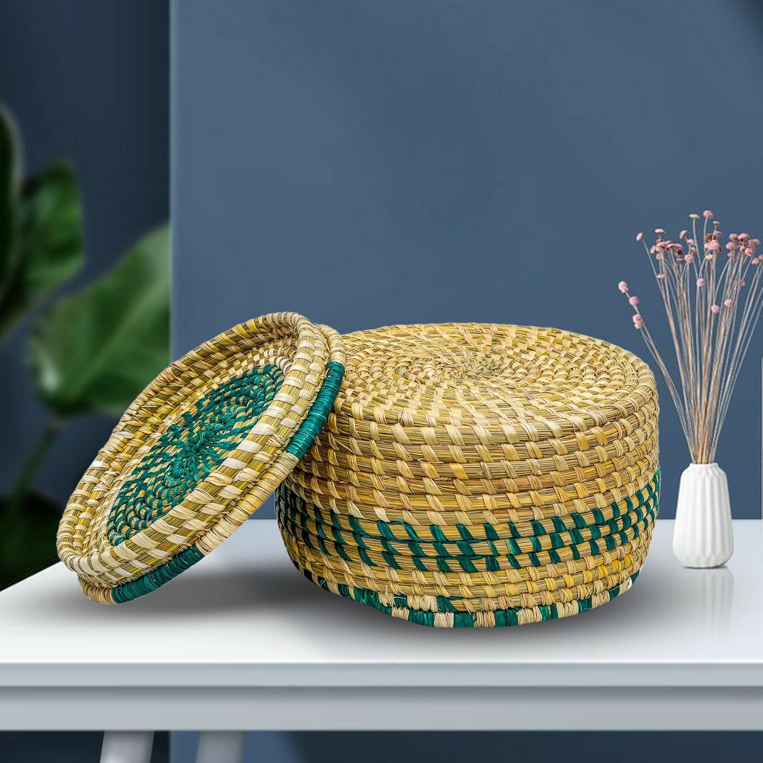 HavePure Handmade Munj Grass Chapati Box – Eco-Friendly Roti Storage Container | Natural & Green Insulated Box for Warm Chapatis | Durable, Lightweight Kitchen Organizer