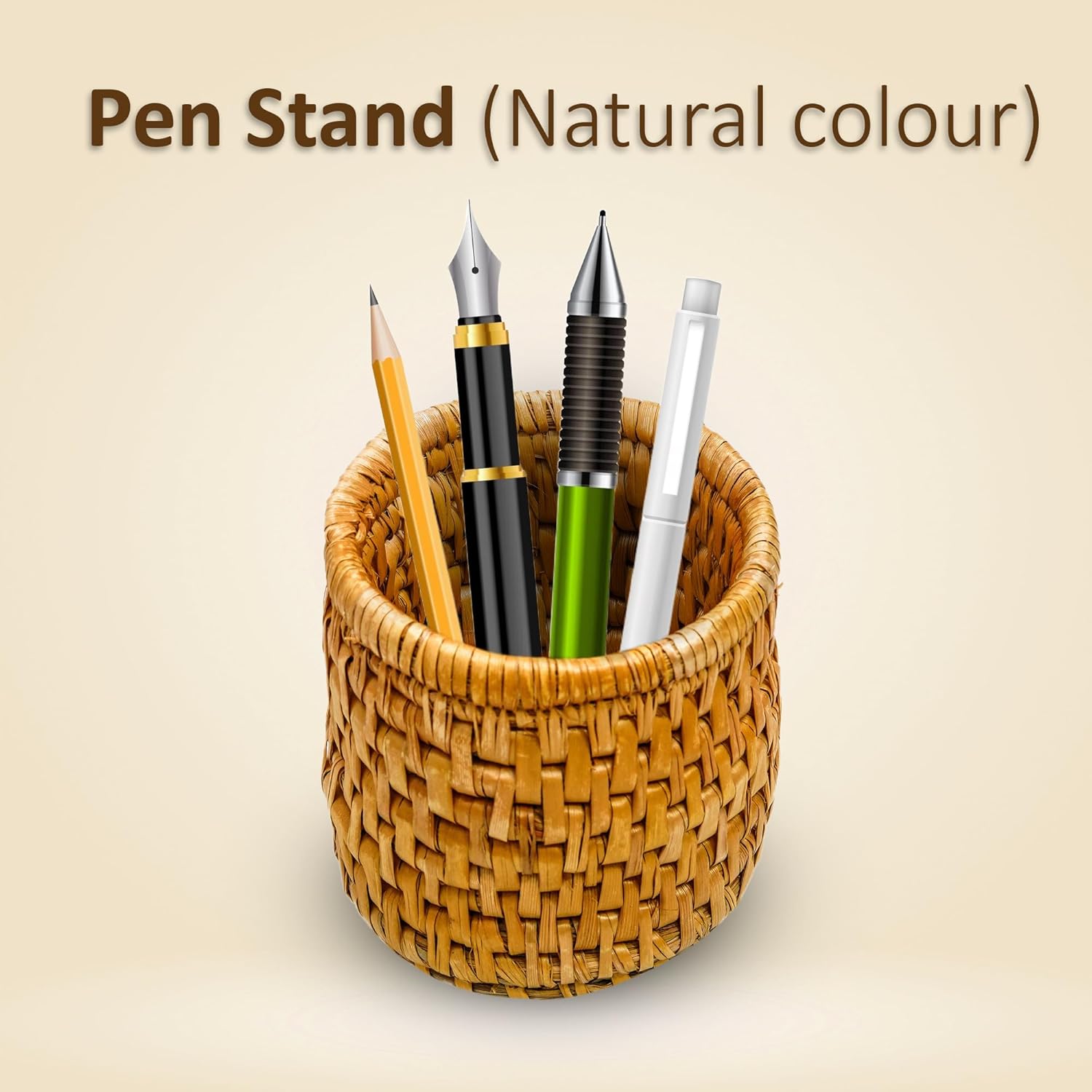 A Natural Color Pen Stand is a stylish and practical accessory designed to keep your desk organized while adding a touch of natural beauty to your workspace. Crafted from eco-friendly materials such as bamboo, wood, or handwoven natural fibers, this pen stand embodies sustainability, durability, and aesthetic appeal. Whether placed on an office desk, study table, or creative workspace, it serves as a sophisticated and functional piece that enhances both productivity and décor. Minimalist Design with a Natural Touch The beauty of this pen stand lies in its simplicity. The natural color and grain patterns of bamboo or wood create a warm and organic feel, making it a perfect match for modern, rustic, or minimalist desk setups. Unlike plastic organizers, which may look artificial and wear out over time, this pen stand maintains its timeless elegance while being sturdy and long-lasting. Its neutral, earthy tone complements various interiors, from professional office spaces to cozy home study areas. Functional & Space-Saving Designed for efficiency, this pen stand provides ample space to store pens, pencils, markers, highlighters, and other small stationery items. Its well-structured compartments ensure that your writing tools are always within reach, reducing clutter and keeping your desk tidy. Some designs even include multiple slots or sections, allowing for better organization of different items like scissors, rulers, or business cards. The compact size ensures that it doesn’t take up too much space while still offering excellent utility.