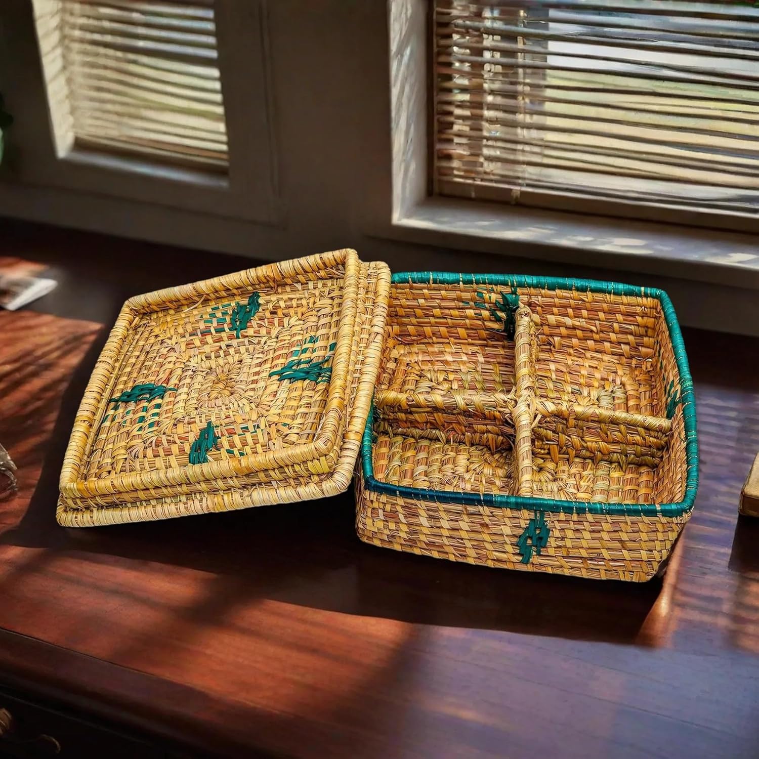 HavePure Munj Grass Dry Fruit Box – Handmade Eco-Friendly Storage Container | Natural & Green Decorative Gift Box | Durable & Lightweight Organizer for Nuts, Snacks & Sweets