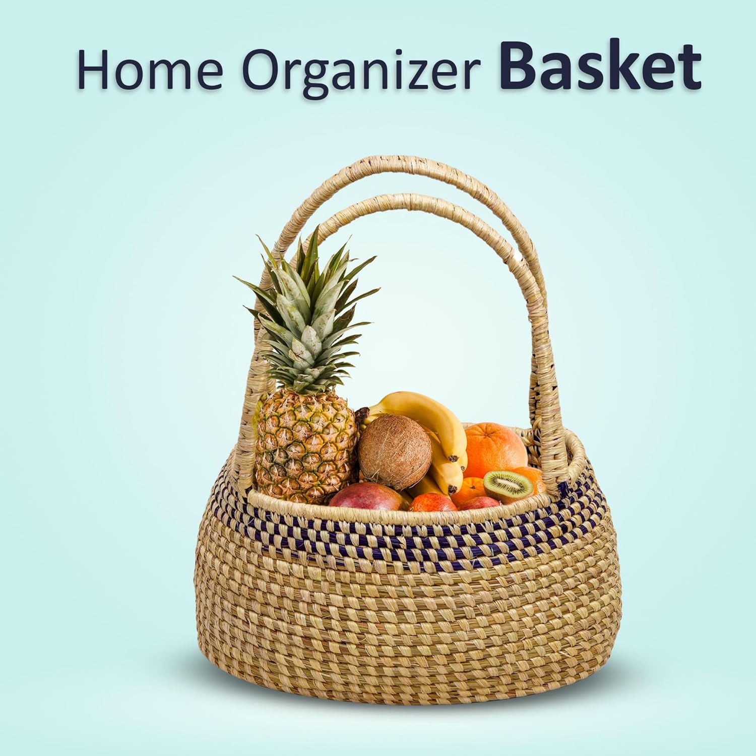 HavePure Munj Grass Handle Basket – Handmade Eco-Friendly Woven Storage Basket | Natural & Durable Organizer for Home, Kitchen & Office | Lightweight & Decorative Design