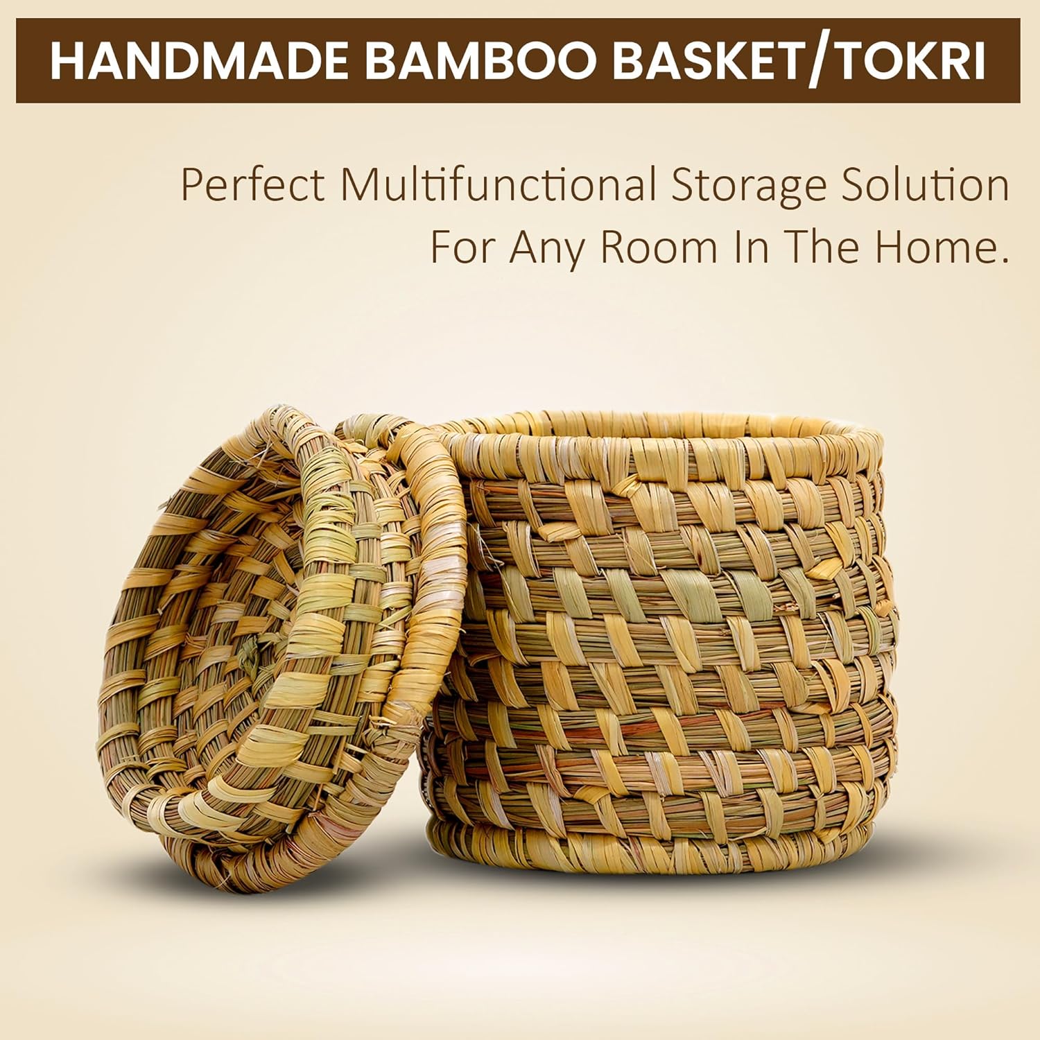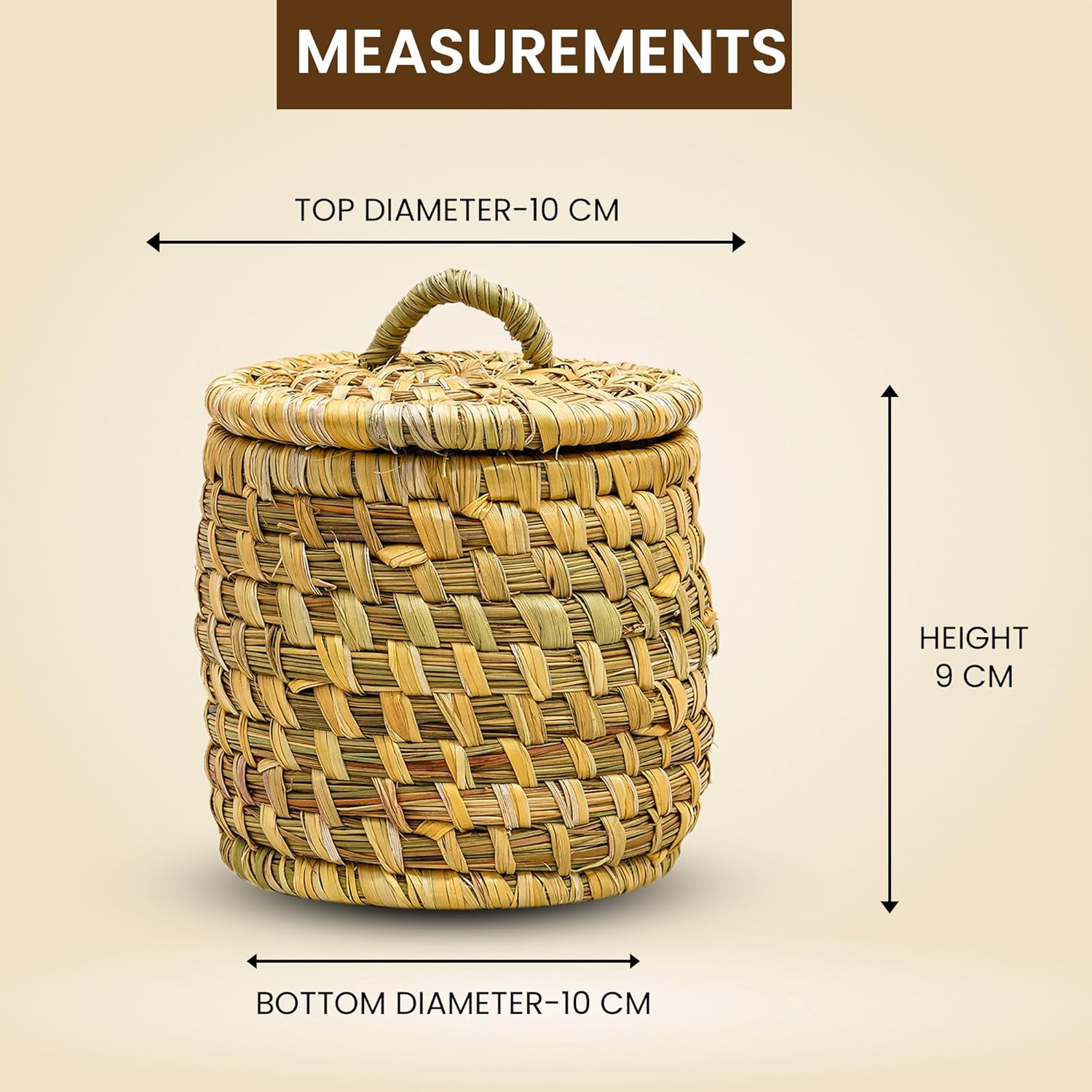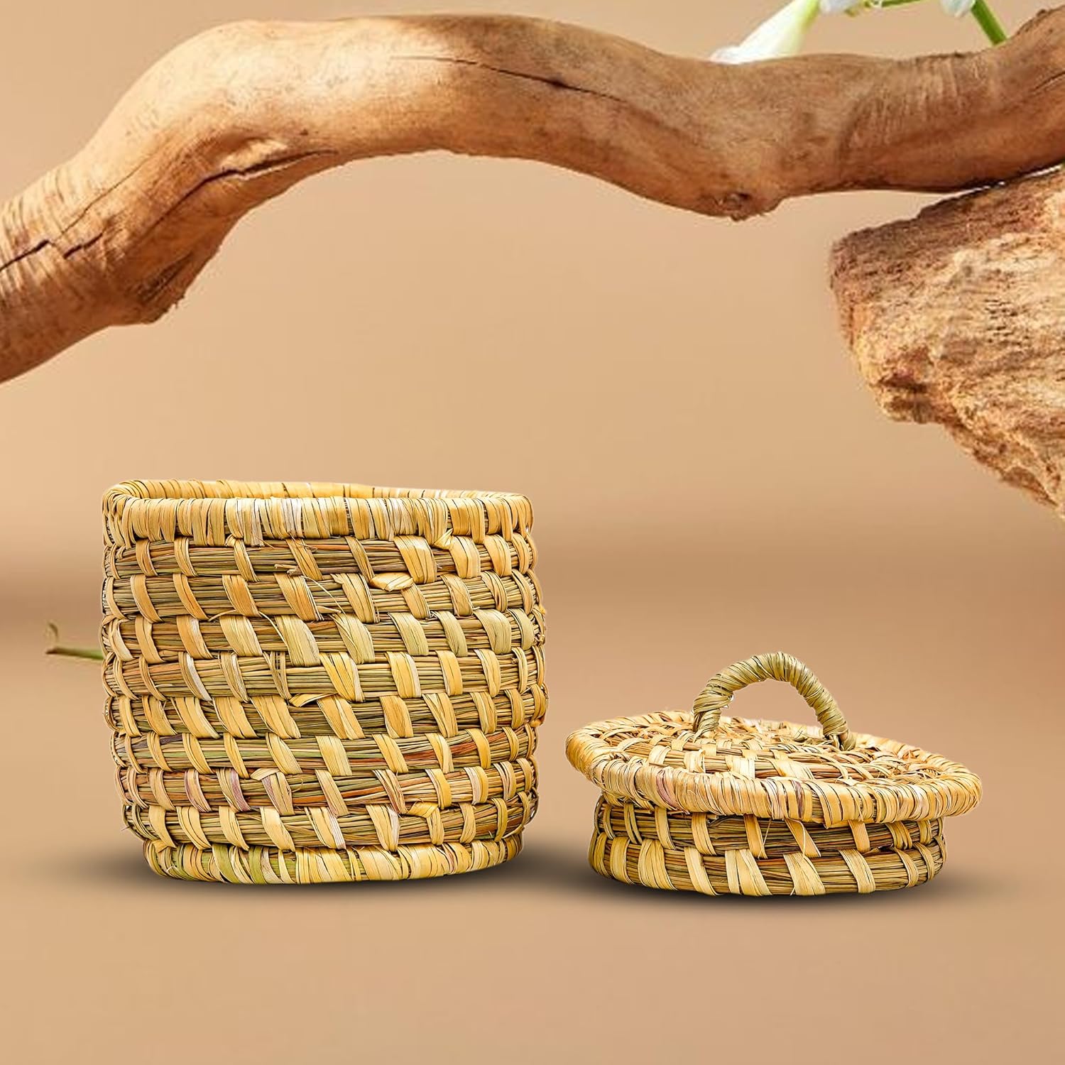 - Handwoven from Natural Munj Grass – Expertly crafted by skilled artisans using 100% natural Munj grass, making it an eco-friendly, biodegradable, and sustainable storage option.