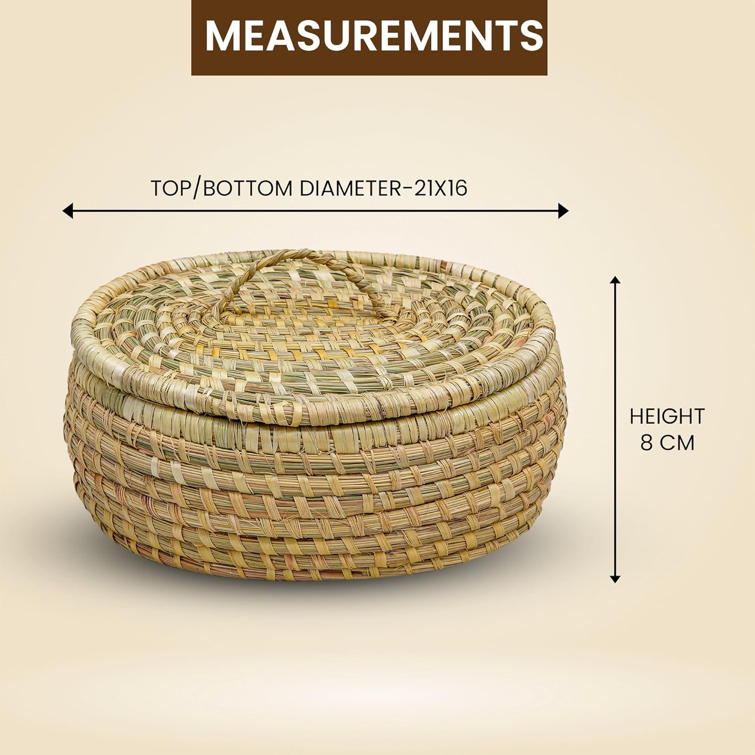- Handwoven from Natural Munj Grass – Expertly crafted by skilled artisans using 100% eco-friendly and biodegradable Munj grass, making it a sustainable and stylish storage solution.