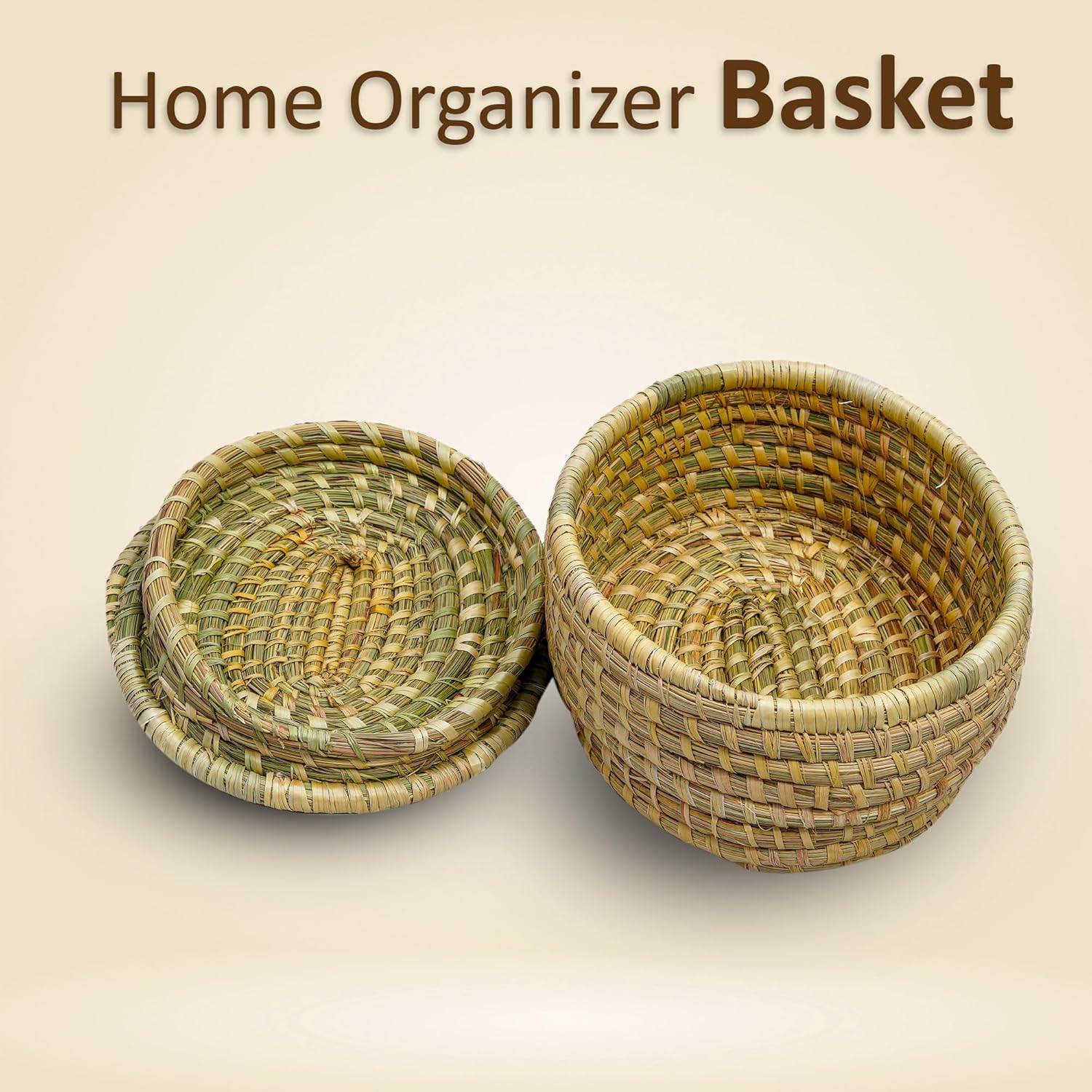 he Munj Grass Multipurpose Container (Natural Color) is a beautifully handcrafted storage solution that combines functionality, sustainability, and traditional craftsmanship. Made from 100% natural Munj grass, this eco-friendly container is a perfect blend of rustic charm and practicality, offering a stylish yet durable option for organizing your daily essentials. Its natural beige color enhances its organic appeal, making it a versatile addition to any home, office, or workspace. Whether used for storing kitchen essentials, office supplies, personal accessories, or decorative items, this multipurpose container is designed to meet a wide range of storage needs while adding a touch of nature to your space. Munj grass is a highly durable and sustainable natural fiber, widely used in traditional handwoven products due to its strength and resilience. Unlike plastic storage boxes that contribute to environmental pollution, this biodegradable and eco-friendly container is made entirely from renewable materials, making it an ideal choice for those who value sustainability. By opting for this handmade container, you are not only investing in a long-lasting and stylish product but also supporting skilled artisans and promoting sustainable living. One of the standout features of this Munj grass container is its versatility. It can be used in multiple ways depending on your needs. In the kitchen, it serves as a perfect storage basket for fruits, vegetables, bread, or dry snacks. Its breathable material helps maintain the freshness of stored items. In the office or study, it can be used to organize stationery, files, or miscellaneous accessories, keeping your workspace clutter-free. Additionally, it can function as a decorative organizer in the living room, storing magazines, remote controls, or craft supplies. The possibilities are endless, making it an essential accessory for any home.
