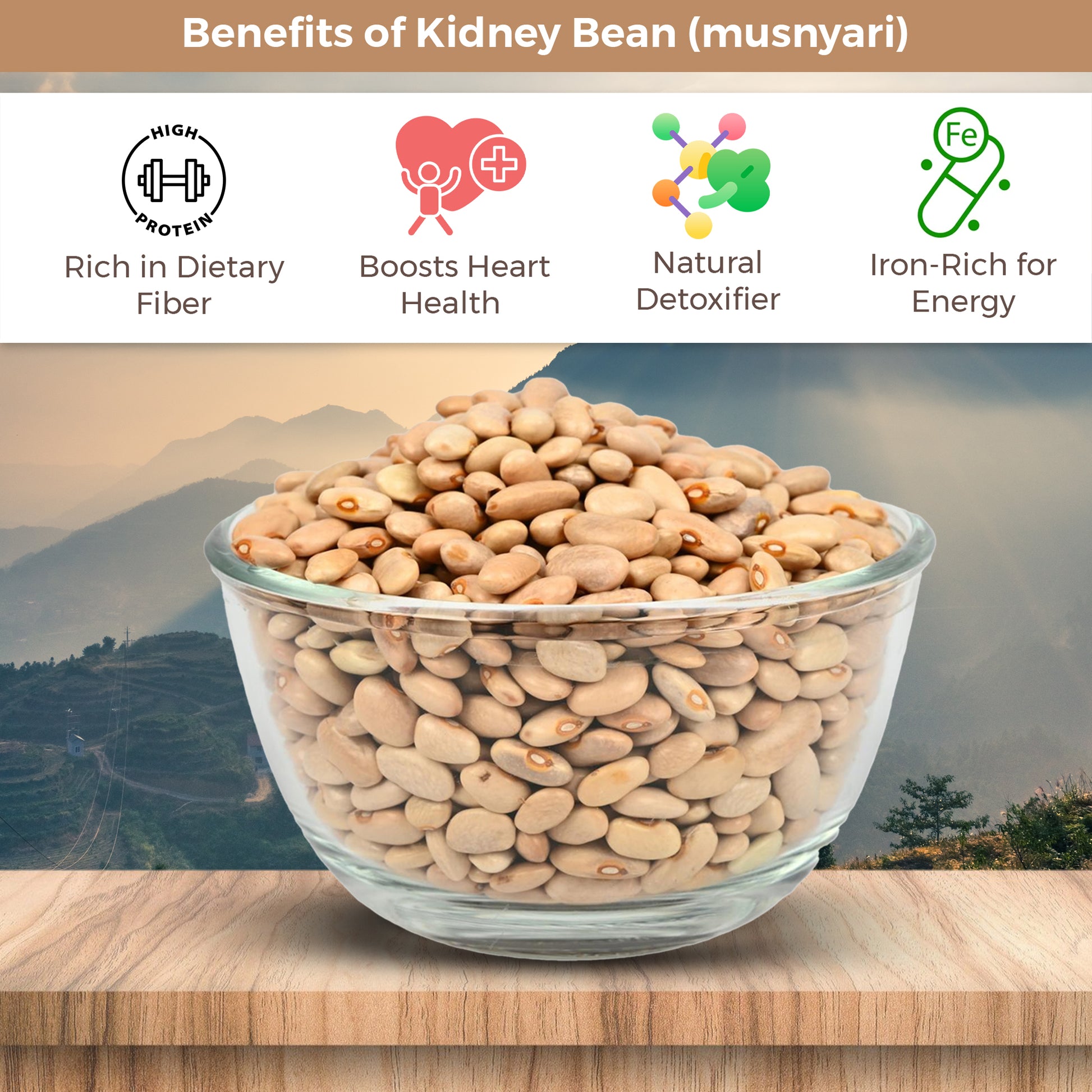 Munsyari Kidney Beans, grown naturally in the serene Johar Valley (also known as Milam or Gori Ganga Valley) in Uttarakhand, are one of the most premium rajma varieties of India. Sourced from altitudes above 2200 meters, this variety is known for its off-white color, large size, and rich, hearty taste.