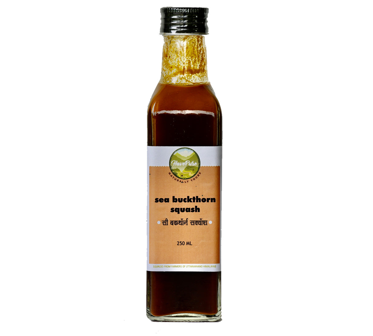 HavePure Sea Buckthorn Squash is a unique and nutrient-dense health drink made from wild sea buckthorn berries (Hippophae rhamnoids) handpicked from Jatoli and Vachham villages in the Kapkot region near Pindari glacier, Bageshwar, Uttarakhand.