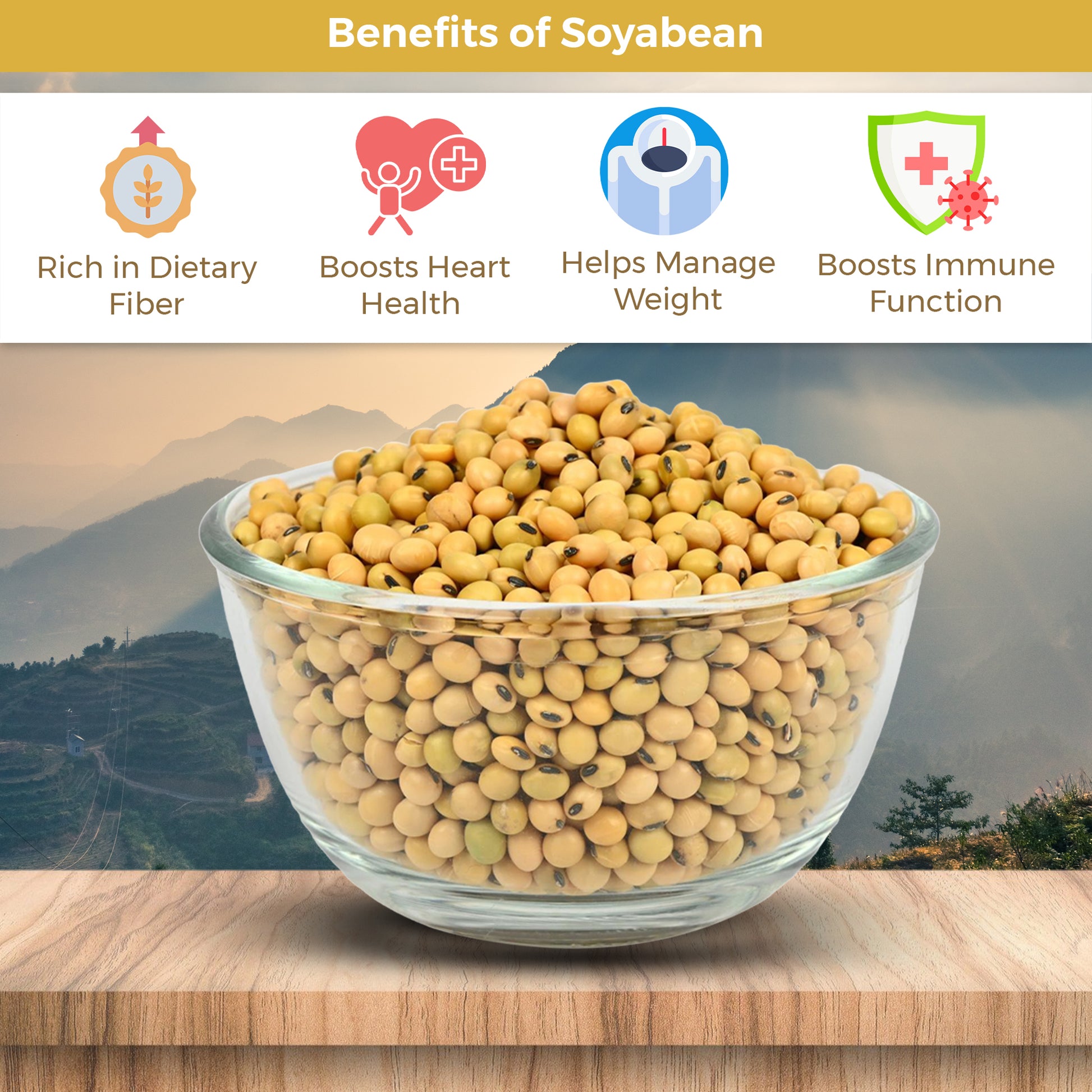 Sourced from the pristine Bhagirathi Valley in Uttarakhand, our Organic Himalayan Soyabean is cultivated naturally in rain-fed terraced fields at altitudes between 1000 to 1800 meters. Enriched by the mineral-rich waters of the sacred Bhagirathi River, these soybeans are not only nutrient-dense but also cultivated without synthetic inputs.