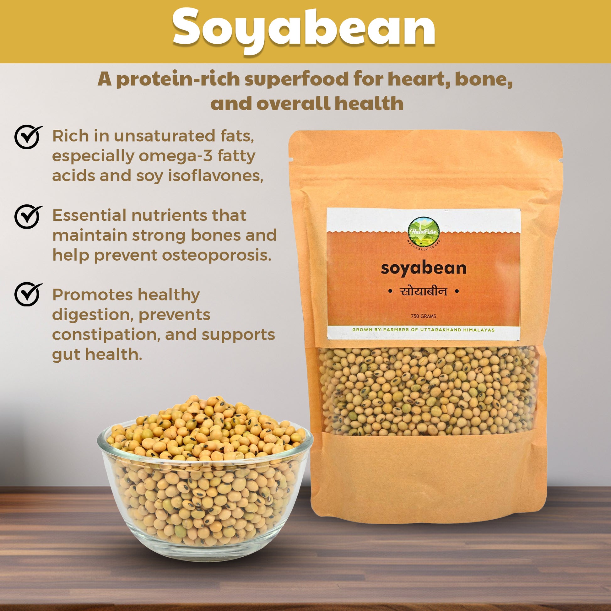 Himalayan Soyabean (750g) β Naturally Grown in Bhagirathi Valley, Rich in Lecithin & Omega-3